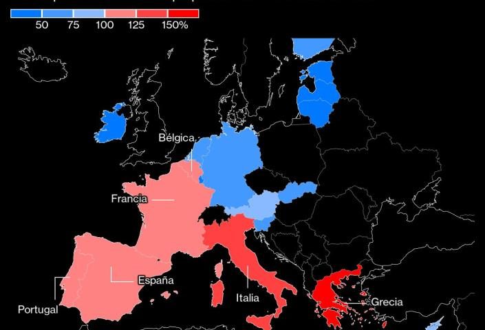 Deudas de 6 países de la eurozona superan 100% del PIB